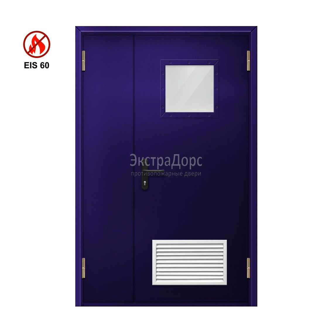 Двупольная огнестойкая дверь EI 60 ДО-02-EI-60 двупольная остеклённая с прямоугольным стеклом