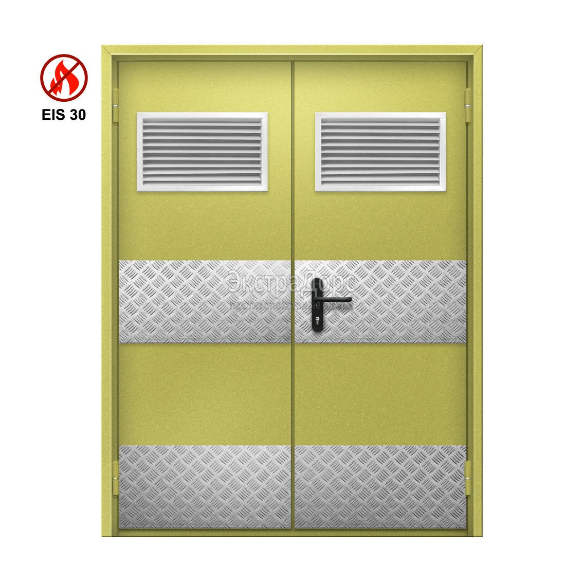 Двухстворчатая огнеупорная дверь EI 30 ДГ-02-EI30 ДП83 двупольная глухая с решеткой в Мытищах