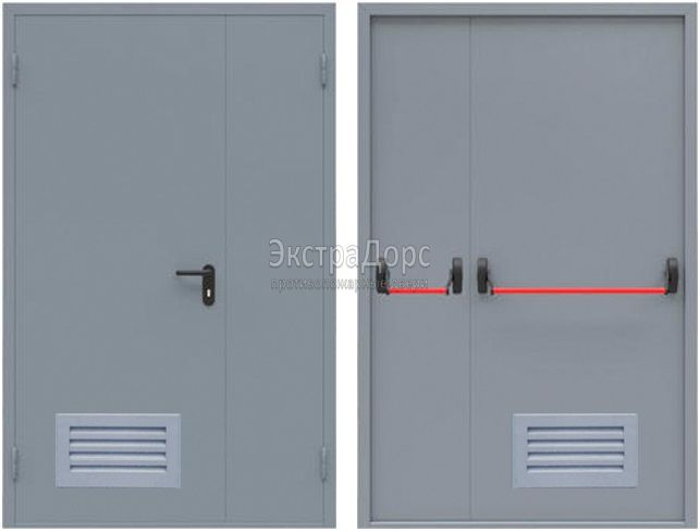 Противопожарная дверь EI 60 полуторная красная газодымонепроницаемая с антипаникой