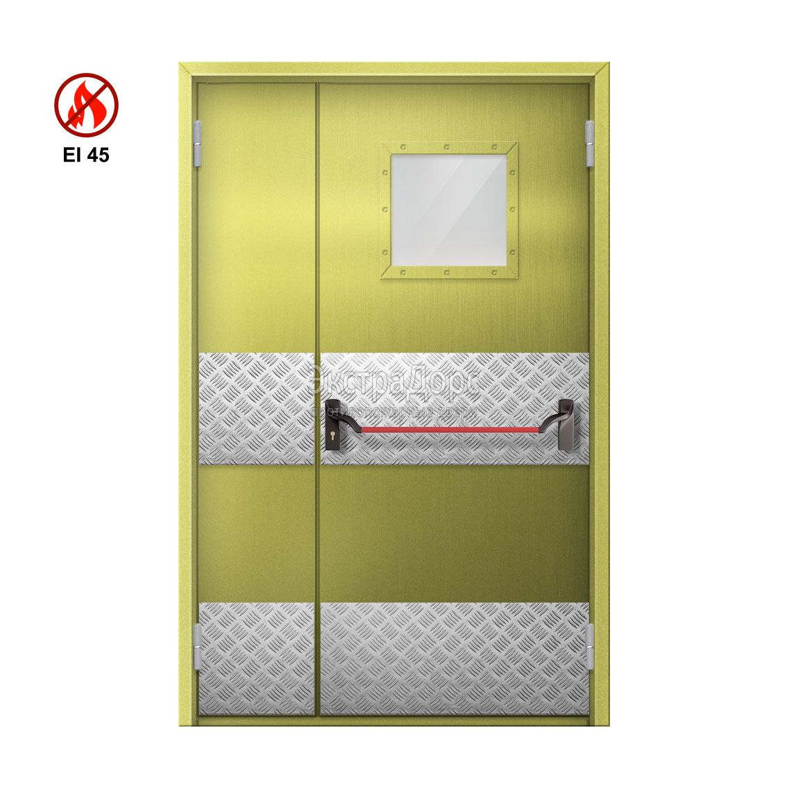 Двухстворчатая огнестойкая дверь EI 45 ДОП-02-EI45 ДП121 двупольная остекленная