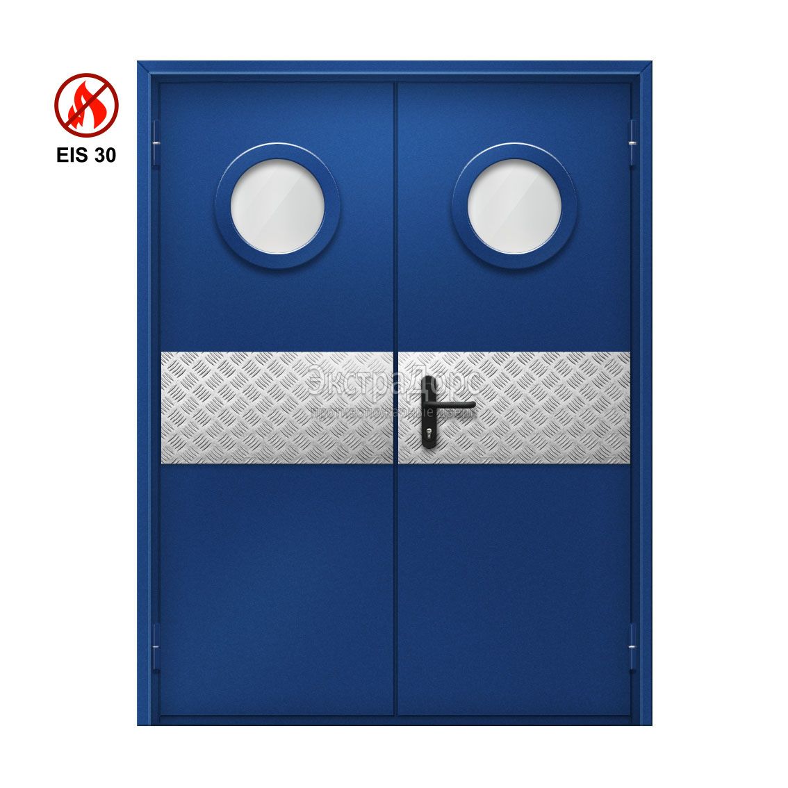 Двухстворчатая огнеупорная дверь EIS 30 ДОП-02-EIS30 ДП87 двупольная остекленная
