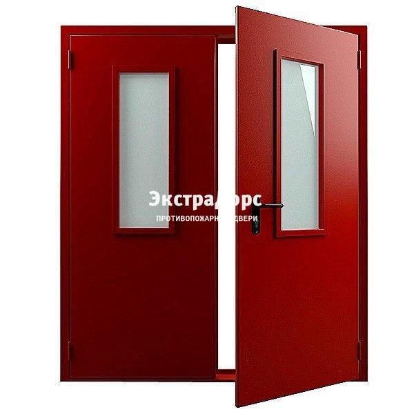 Противопожарная дверь EI 90 двухстворчатая красная c выпадающим порогом со стеклом в Мытищах