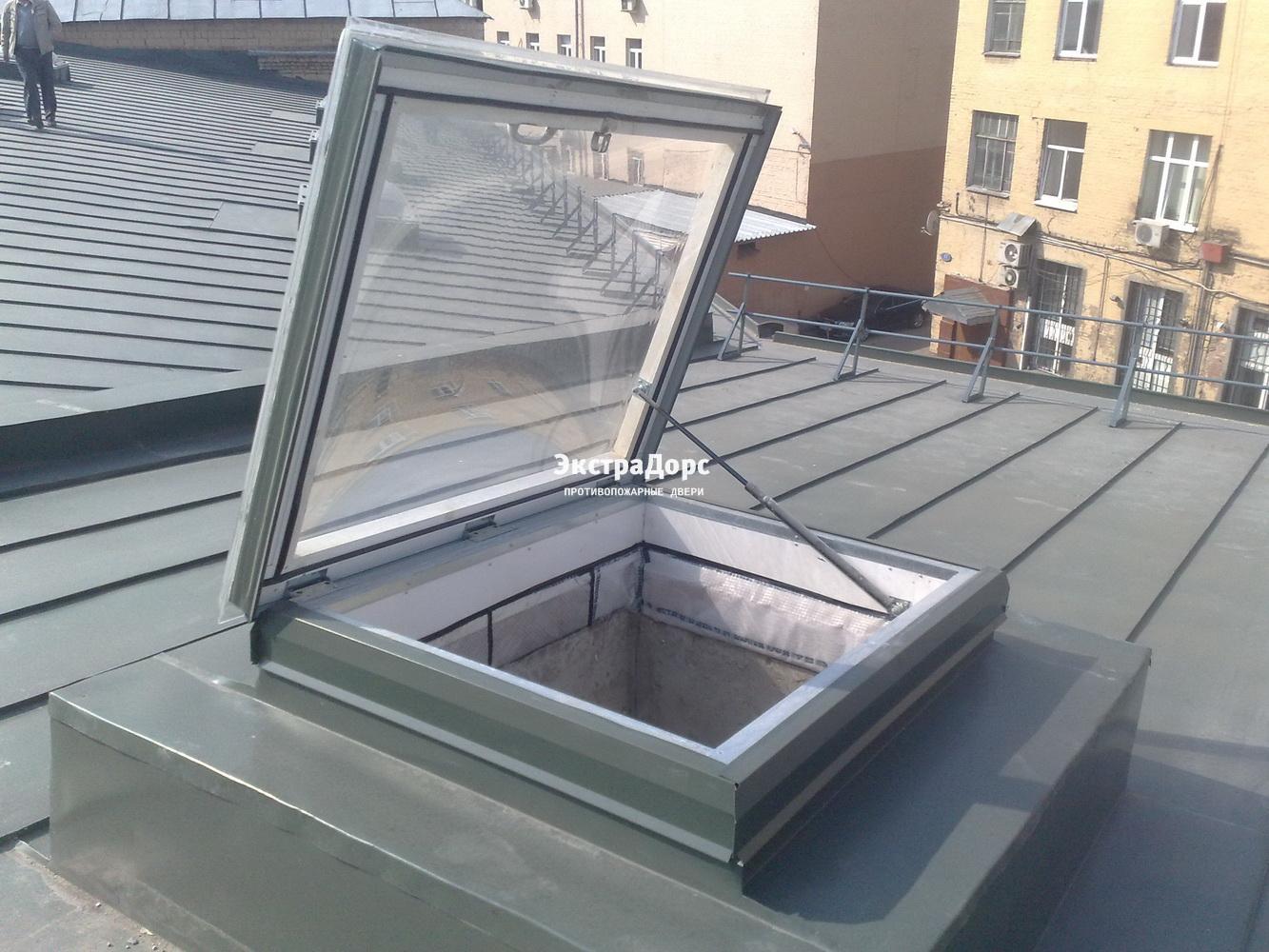 Черный противопожарный люк на кровлю с прозрачной крышкой