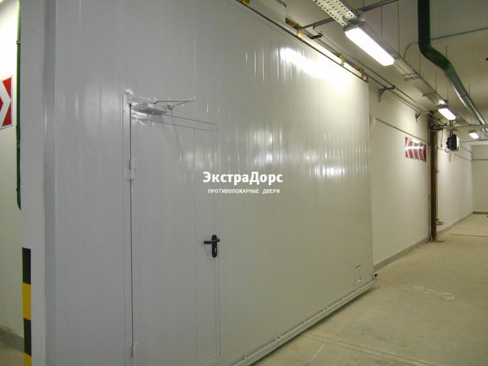 Подъемные противопожарные ворота с окнами и поворотной калиткой