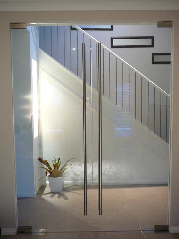 Противопожарная безрамная дверь со стеклом в частный дом в Мытищах