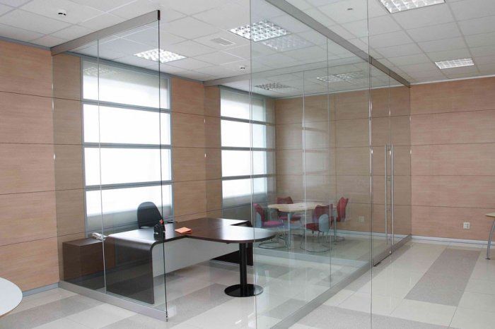 Противопожарная безрамная дверь в переговорную в Мытищах